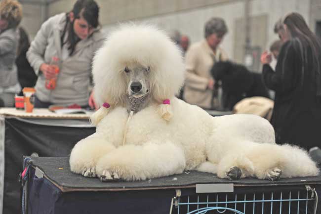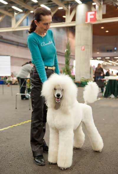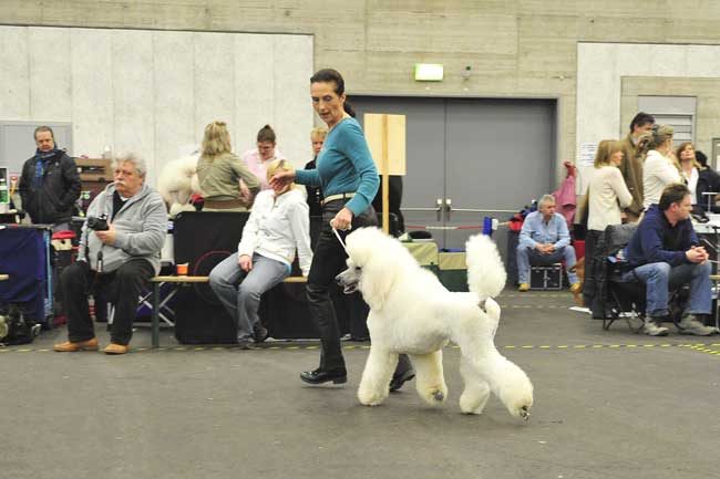 | Frau Mach richtet am Samstag div. Rassen im Ring neben den Pudeln |
