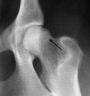 Die Ausprägung klinischer Symptome einer HD variiert in Abhängigkeit vom Alter bzw. Stadium der Krankheit. Bei relativ jungen Tieren, im Alter von einem halben bis einem Jahr, kommt es zur Schmerzhaftigkeit, weil der Oberschenkelkopf in der Hüftgelenkspfanne (Acetabulum) nur ungenügenden Halt findet und durch seine abnorme Beweglichkeit schmerzregistrierende Nervenfasern der Knochenhaut des Pfannenrandes gereizt werden. Ältere Tiere bilden Schmerzhaftigkeiten eher infolge fortschreitender degenerativer Veränderungen (Arthrosen) des Hüftgelenkes aus. Eine beginnende HD äußert sich in zunehmenden Schmerzen bei Spaziergängen, der Hund will nicht mehr weit laufen, setzt sich öfter hin, schreit beim Spielen ab und zu auf und zeigt einen instabilen Gang. Beim Vorführen der Hintergliedmaße wird das Becken in Richtung der vorgeführten Gliedmaße seitwärts bewegt (LSÜ-twist). Bei Bewegungen des Gelenkes kann ein hörbares Knacken, Klicken oder Knirschen des Gelenks auftreten. Bei Feststellung eines der Symptome ist der sofortige Gang zum Tierarzt ratsam. |