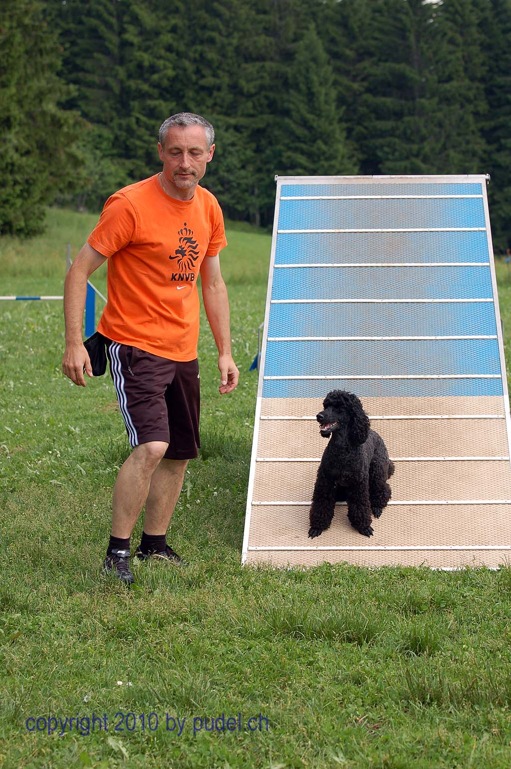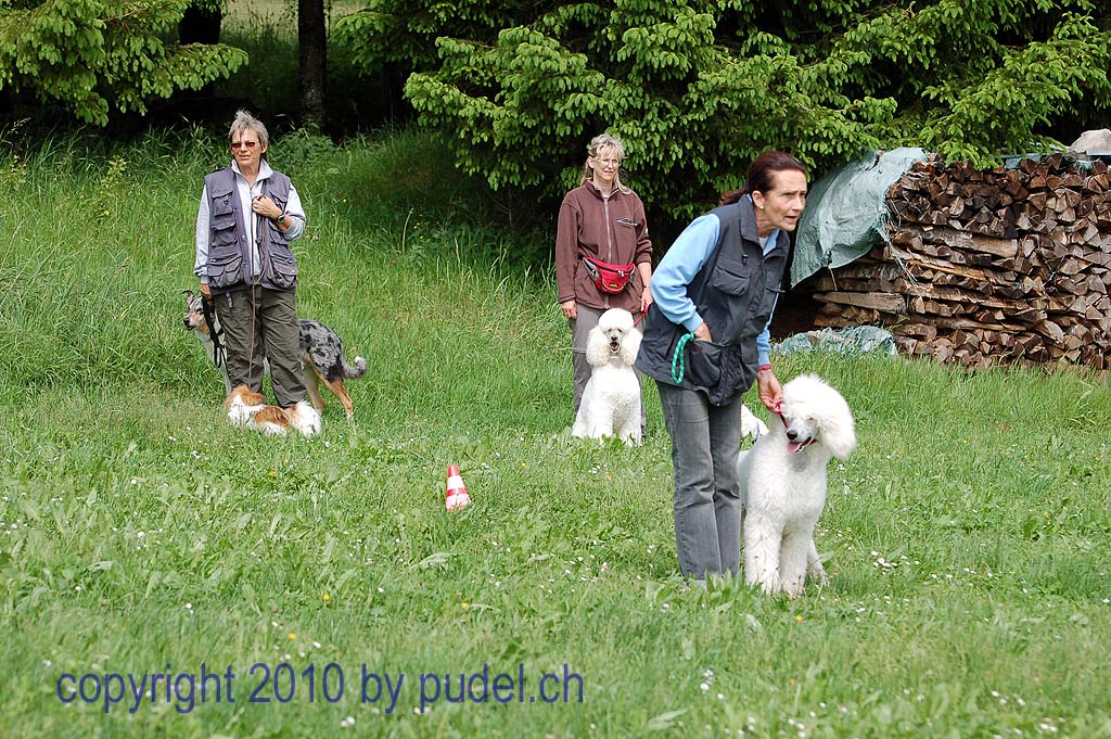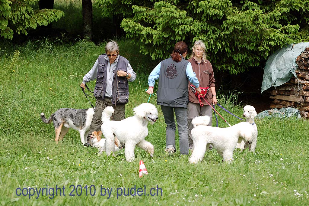 Zum vierten Mal seit 2007 reiste eine Pudelsportgruppe in den Schwarzwald. Leider war das Wetter nicht über alle Zweifel erhaben. Aber so schlecht wie die Wetterfrösche prophezeiten war es nun auch wieder nicht: Am Freitag-Nachmittag erfreute uns sogar die Sonne. Nur der Samstag zeigte uns die kalte Schulter und es regnete immer mal wieder. Am späten Nachmittag hörte der Regen endlich auf und es trocknete langsam ab. Der Sonntag war trocken, allerdings machte sich jetzt die Schafskälte bemerkbar. Das tat aber der guten Stimmung keinen Abruch: Alle geplanten Übungen mit unseren Pudeln konnten durchgeführt werden.