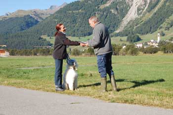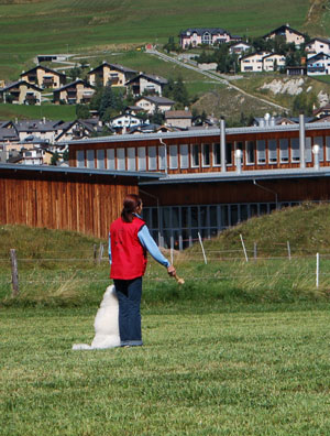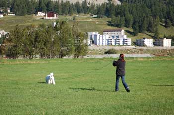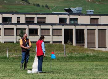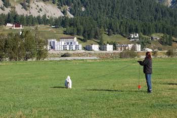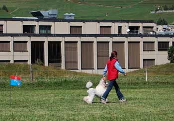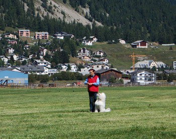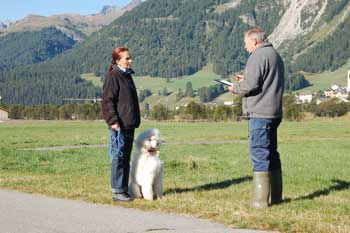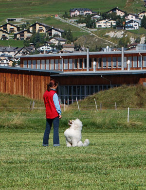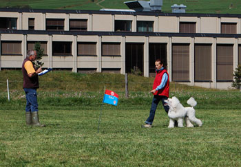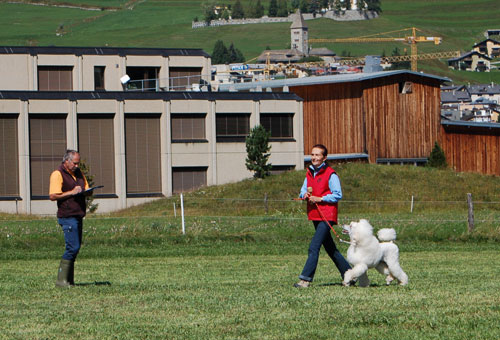 Am 2. September 07 führte der SC OG Engadin eine Prüfung für BH 1 - 3 durch. Hans Hindenlang und ich entschlossen uns an dieser Prüfung mit unseren Pudeln teilzunehmen. Sowohl für Boy als auch für Breeze war es die erste BH-1 Prüfung. Hans hatte bereits früher einmal mit seinem Grosspudelrüden ABC eine BH-Prüfung abgelegt und war von der Organisation und dem Austragungsort begeistert. Die Teilnehmerzahl ist beschränkt, es waren insgesamt 12 Teams am Start: 8 BH-1 / 2 BH-2 / 2BH-3 . |